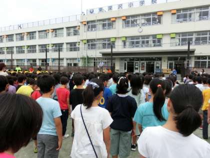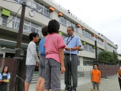 全校朝会では、将棋で優秀な成績を残した児童3人と、教職員バレーボール大会で都内ベスト8に進んだ教員チームが表彰されました。