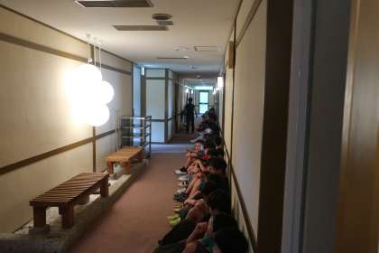 室長を先頭に廊下に並び、避難経路を確認しました。