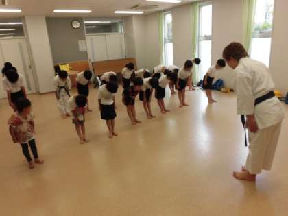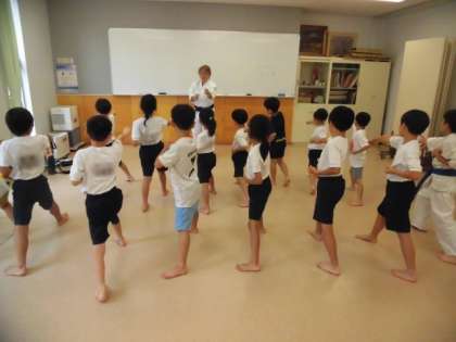 まずは、「礼」の仕方から習いました。みんな良い姿勢で気持ちよく挨拶しています。