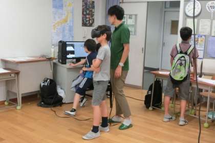 VR体験や、水溶液の実験、地球の温度を下げるにはどうしたらよいかなどを楽しみながら学びました。東京学芸大学附属世田谷小学校校長の松浦先生と、研究室の学生さんが理科の面白さを教えてくれました。