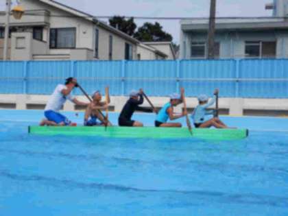 「いかだ練習」も今日が最後。今年は暑過ぎたせいで練習できた日が少なくなってしまいましたが、今日は10名が集まって漕ぎまくりました。来週の大会では、優勝や入賞できるかな。