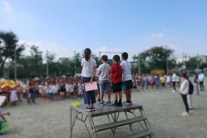 2学期始業式の児童代表の言葉は、4名が話してくれました。