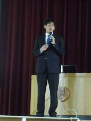 先日の東北太平洋沖大地震で、延期した 先輩 西村雄一 さん「夢」授業を5時間目に行いました。