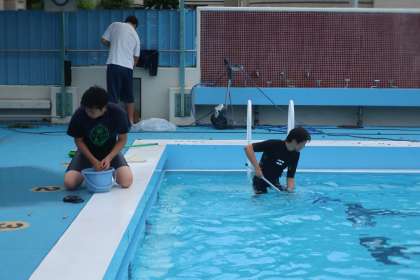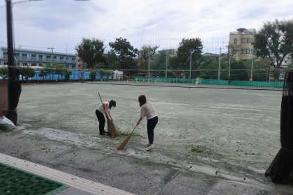3校時からの授業開始に向けて、学校の内外の環境を整えています。