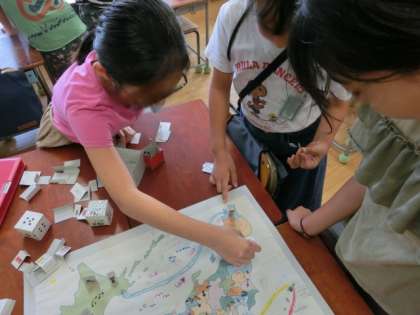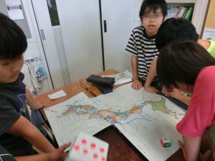 4年生は、各クラスでカルタやすごろくを用いて、都道府県の勉強をしています。各自工夫を凝らして必死に都道府県の名前、形、場所などを覚えています。
