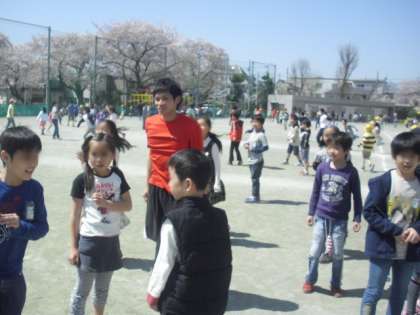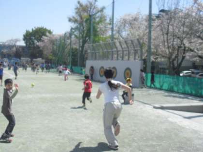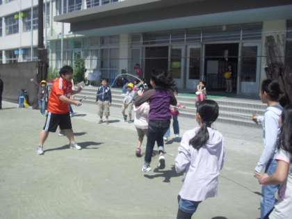 天気が良くて、気温も高く気持ちの良い中休みです。先生方も一緒に外で遊んでいます。追いかけっこをしている先生の写真がなかなか撮れません。ごめんなさい。
