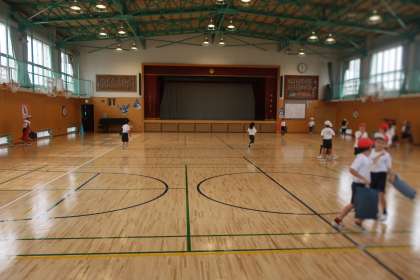 体育館の床工事が終了しました。