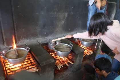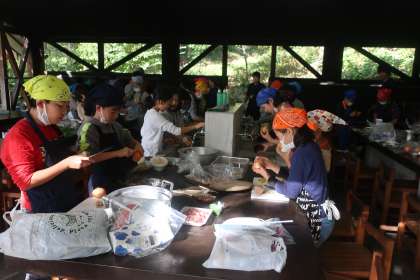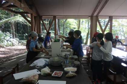 カレー係、飯盒係、かまど係に分かれて、自分の役割を果たします。
