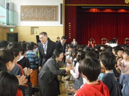 体育館を退場する時の大きな拍手と握手、昇降口でのお別れに涙する姿に感動しました。