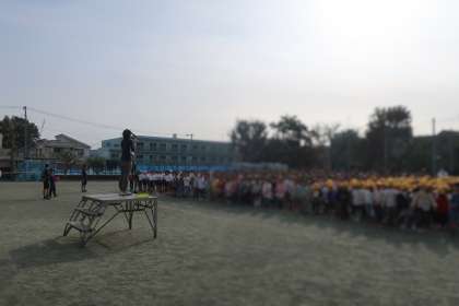 校長の話、看護当番の話の後、連合運動会に参加する6年生への壮行会を行いました。