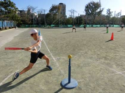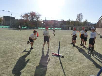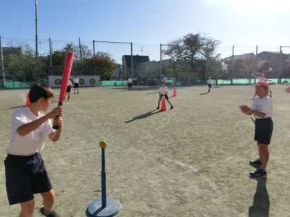 6年生の校庭体育として、ベースボール型ゲームが始まりました。どこに打つか、どのように守るか、一喜一憂してゲームを楽しみました。