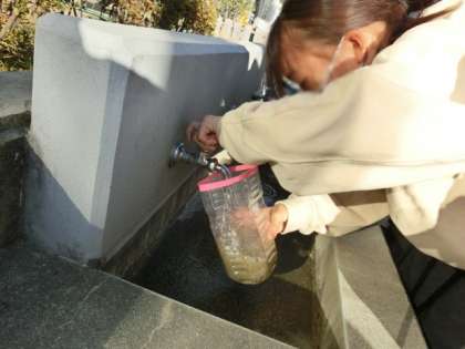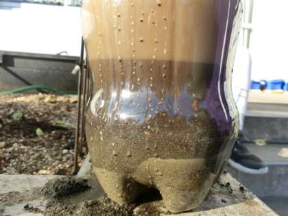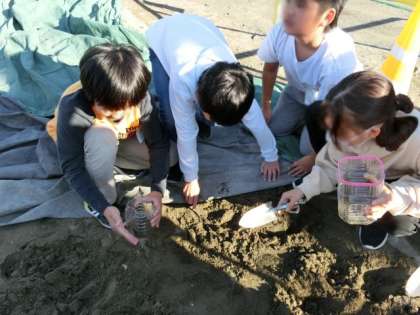 6年生は理科で地層について学んでいます。地層ができる理由を、ペットボトルに土を入れた実験で確かめました。
