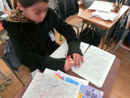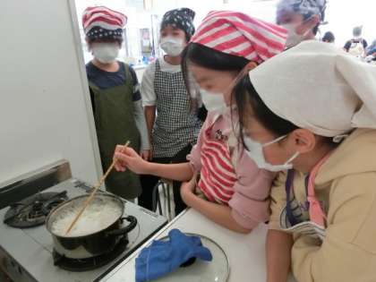 1組は調理実習、4組は卒業文集の作成にがんばっていました。