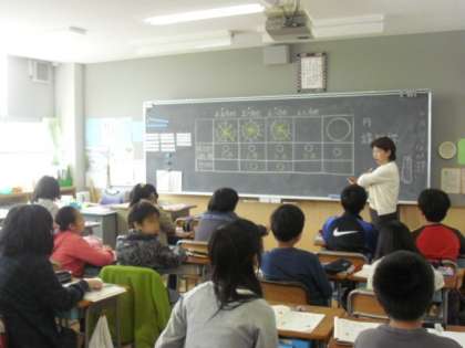 6年生の算数です。3クラスを4つのグループに分けて自分のペースに合ったコースで勉強しています。少人数算数の学習を始めて4年目です。算数の少人数学習は今や当たり前になっています。