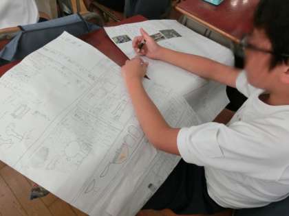 社会では、社会科見学で学んだことを、新聞にしてまとめていました。