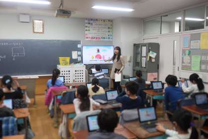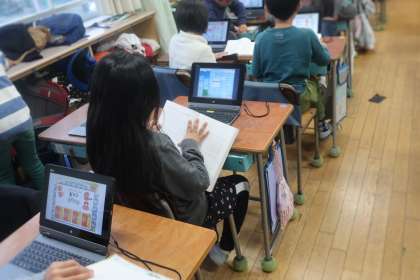 タブレットPCを使い、ローマ字入力の練習をしました。