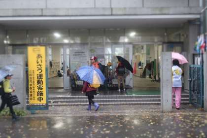 みしまの森学舎 3校合同あいさつ運動が行われました。