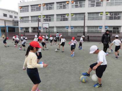 東京ヴェルディのご協力で、サッカー教室を行いました。子ども達は楽しそうにボールを追いかけ、運動をしていました。