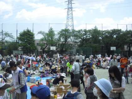 東深沢・等々力コミュニティー主催の「フリーマーケット」が東深沢中学校で開かれました。今年のフリーマーケットの収益の一部は東日本大震災で被害に遭われた方々への義援金になります。
