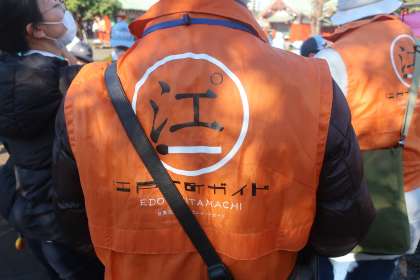 ボランティアガイドの方の案内で、グループごとにお話を聞きながら歩きます。
