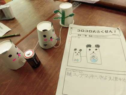 2年生の教室では、おもちゃを作って、うまくできたところ、できなかったところの意見交換をしていました。