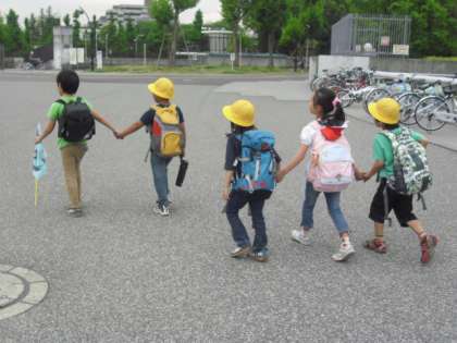 お弁当の後も公園で一遊びして、学校に向かいます。