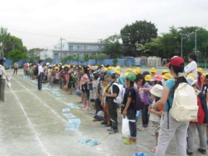 疲れていても最後は校庭でしっかりと話を聴く1,2年生でした。