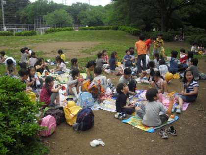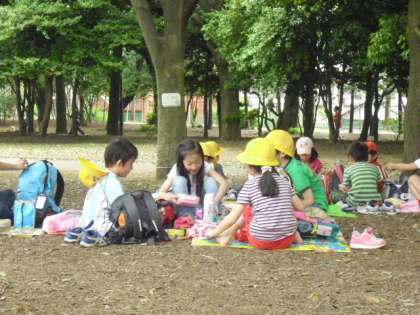 お弁当も班の皆で一緒に食べます。たくさん遊んだからとてもおいしくいただきました。