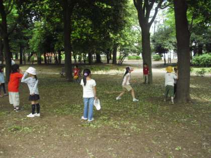 駒沢公園では、班ごとに遊びます。いつも遊びに行く公園ですが、1,2年生200人で遊ぶ公園はいつもとは違います。1年生に何をして遊びたいか聞いて遊ぶ2年生を見て頼もしく思いました。小学校生活1年間の成長を本当に嬉しく思います。