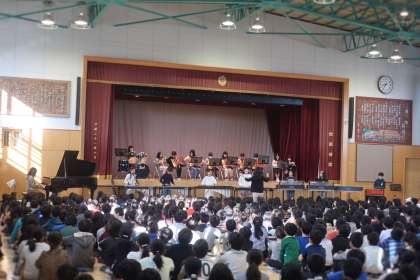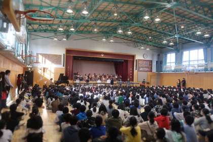 演奏に、全校児童が聞き入っていました。