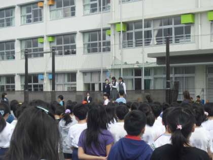 今回は、東深沢小・等々力小・東深沢中で、3月11日に起こった東日本大震災の被災地への義援金の募金を行いたいと思います。皆さんをご協力よろしくお願いします。」
