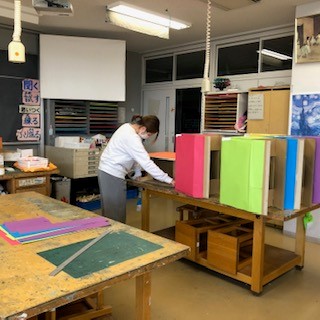 3枚目は、図工室の様子です。図工専科の先生は、いったい何をつくっているでしょうか。正解は、後日、お知らせしますので、お楽しみに!