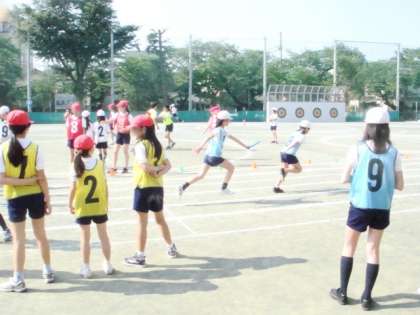 登校時刻の前から、リレーの選手や応援団が練習を始めています。