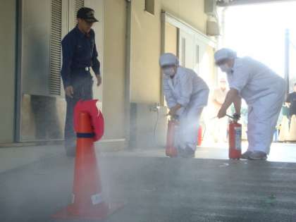 放課後には、給食調理師さんによる防火・消火訓練が行われました。