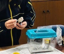 ひな鳥は、ぶじに飼育委員会の先生にもどされました。どうしてインコのひな鳥が学校にいるのかは、またのお楽しみに!
