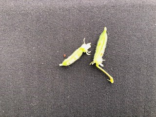 写真(しゃしん)は、通学路(つうがくろ)で見(み)かけた「カタバミ」という雑草(ざっそう)の実(み)と種(たね)です。分散登校(ぶんさんとうこう)に向(む)けて、登下校(とうげこう)の練習(れんしゅう)をするときに、人(ひと)との距離(きょり)や人数(にんずう)、時間(じかん)を考(かんが)えて見(み)つけてみてね。実(み)をさわると、はじけて種(たね)が飛(と)び出(だ)します。でも、はじける実(み)をさがすのに夢中(むちゅう)になると道草(みちくさ)を食(く)ってしまいます。1度(ど)に3回(かい)など決(き)めてチャレンジしてみてね。