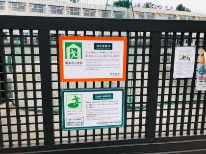 「ひがし」のみなさん、おはようございます。今朝(けさ)7時(しちじ)の学校(がっこう)の周(まわ)りの様子(ようす)です。学校(がっこう)の周(まわ)りの安全点検(あんぜんてんけん)を終(お)えました。学校(がっこう)は、災害(さいがい)などのために、様々(さまざま)な準備(じゅんび)をしています。写真(しゃしん)は、何(なに)の備(そな)えか考(かんが)えてみてね。主事(しゅじ)さんや先生方(せんせいがた)は、みなさんの登校前(とうこうまえ)に、校舎内(こうしゃない)の安全(あんぜん)を見回(みまわ)ったり消毒(しょうどく)・掃除(せいそう)をしています。
