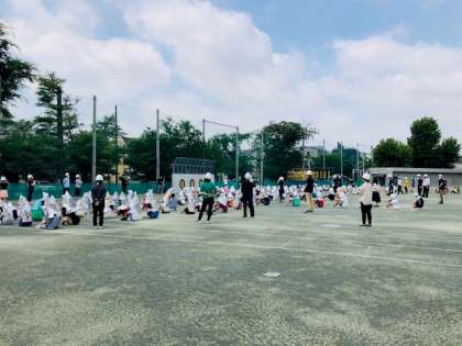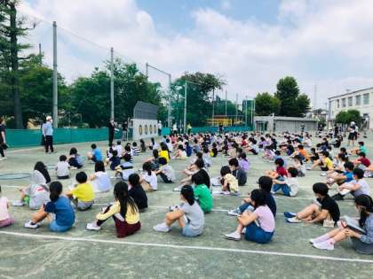 今日(きょう)は、校庭(こうてい)に避難(ひなん)をしました。初(はじ)めて参加(さんか)した1年生(いちねんせい)も先生(せんせい)の話(はなし)をよく聞(き)いて、しっかり避難(ひなん)できました。新BOP(しんぼっぷ)に通(かよ)う学童(がくどう)の児童(じどう)も参加(さんか)しました。学校(がっこう)の周(まわ)りには、玉川警察署(たまがわけいさつしょ)やPTA役員(ぴいてぃえい)の皆様(みなさま)がパトロール(ぱとろおる)をしてくださっていて、本当(ほんとう)にありがたく心強(こころづよ)く感(かん)じました。