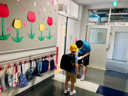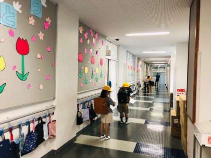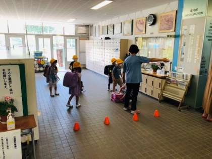 今日(きょう)は1年生(いちねんせい)の分散登校(ぶんさんとうこう)3回目(さんかいめ)です。