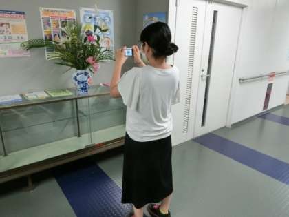 3枚目の写真は、ホームページにのせる写真を探している先生の様子です。みなさんに東深沢小学校のことを伝えるために校内をまわっています。