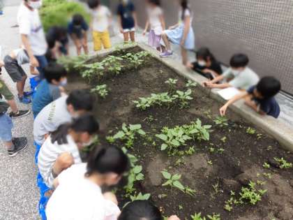 子葉と葉のちがいを見つけ、小さい種から大きく育っていく様子に驚きの声があがりました。(I.Y)