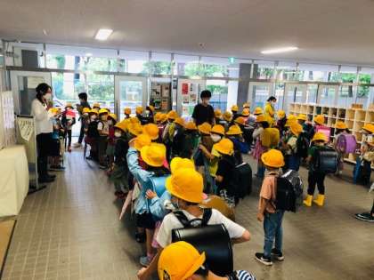 写真(しゃしん)は、1年生(いちねんせい)の下校(げこう)の様子(ようす)です。先生(せんせい)が静(しず)かに指示(しじ)を出(だ)しても1年生(いちねんせい)は先生(せんせい)の言(い)うことをしっかり聞(き)けていて感心(かんしん)しました。来週(らいしゅう)からは通常登校(つうじょうとうこう)となります。やっとクラス全員(ぜんいん)がそろいます。ヤッター!(やったあ)という喜(よろこ)びの声(こえ)が聞(き)こえてくるようです。