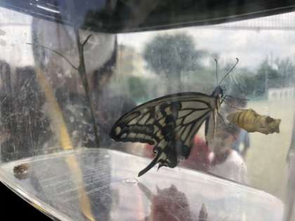 1校時に立派なアゲハチョウになり、大歓声があがりました。