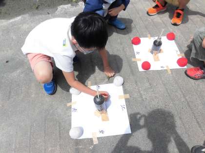 今日は梅雨の晴れ間を見計らって、校庭でかげの観察をしました。時間によってかげができる位置やかげの長さが変わることなどを観察することができました。(N.N)(S.M)
