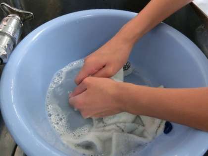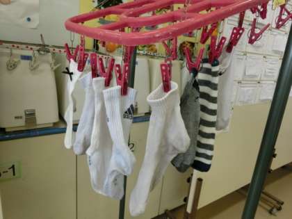 今日は、靴下や布きんのよごれを、手洗いで落としました。「洗う→しぼる→すすぐ・しぼる→干す」の順で、手順良く洗たくをしました。普段は洗濯機で洗濯している子どもたちは「なかなか落ちない!」と苦戦しながらゴシゴシともみ洗いを続け、最後にはきれいに汚れが落ちました。(S.N)