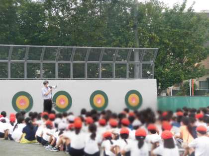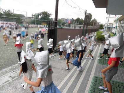 今年度初めて、全学年が揃っての避難訓練を行いました。