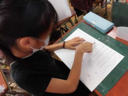 はじめは緊張しているようでしたが、だんだんと慣れ、上手にカッターを使いこなす姿が見られました。(I.Y)