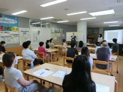 今日は校内英語研修を行いました。ALTの先生を交えての模擬授業を行い、児童の評価のポイントや授業で有効な声かけなどを学びました。(A.T)