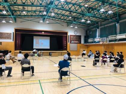 密を避けるために体育館を会場にしていますが、教室で児童の具合が悪くなったと想定して、役割演技をしながら対応を具体的に確認しました。