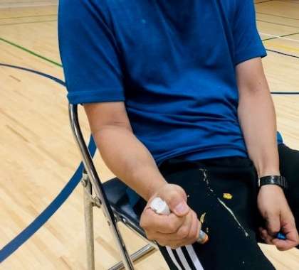 3枚目の写真は、各々が模擬エピペンを使用し、打つ場所や操作を確認しているところです。